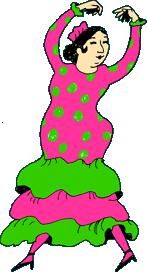 Bailan flamenco en un tablao, danza de los gitanos de Andalucía. Es un escenario pequeño donde los bailarines expresan su pasión por la danza. Con sus vestidos sevillanos, sus zapatos de tacón y sus castañuelas, bailan al son de guitarras y del cante jondo, reminiscencia de la música litúrgica de los mozárabes (árabes en España), y música ladina. Un guitarrista flamenco muy famoso es Paco de Lucia, artista del misterio y la sensualidad de la música flamenca.